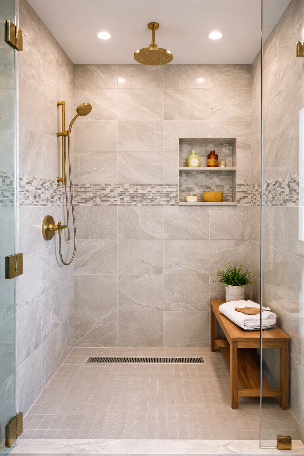 Choose from a variety of tile styles, fixtures, glass enclosures, and finishes.